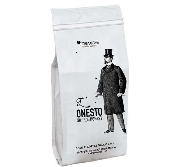 Découvrez ce café en grain italien, prénommé par le torréfacteur italien, Cosmai Caffè, « The Honest ». Mélange produit à partir de 30 % de grains arabica de qualité supérieure et de 70 % de grains robusta issus du Brésil, de Tanzanie, de l’Inde et du Guatemala. Goût fort et crémeux, corps rond et velouté pour un café devenu un classique. Torréfaction italienne et foncée. Conditionnement 250 g.