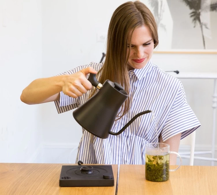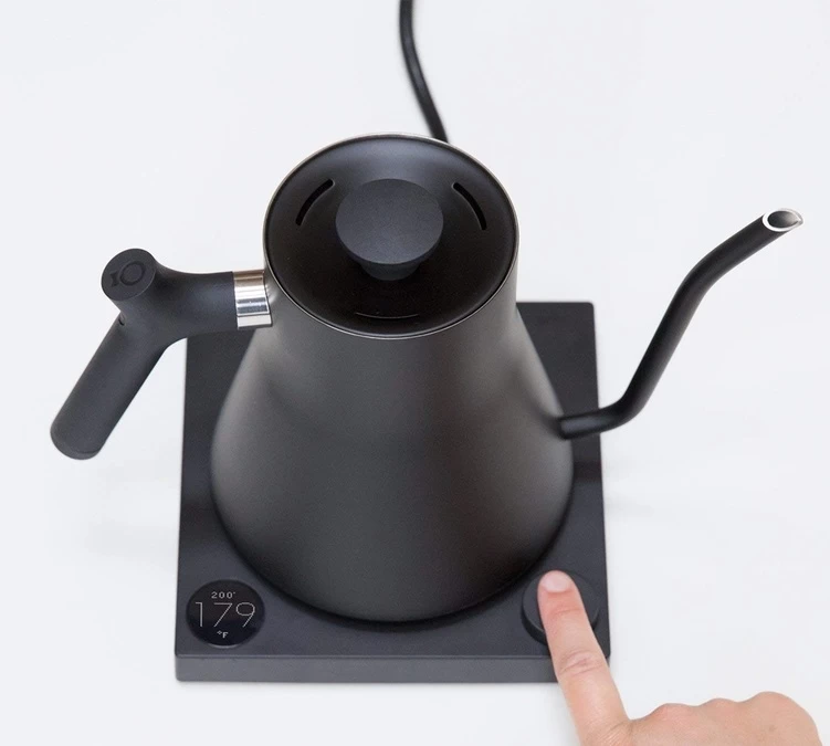 Un contrôle de la température très facile avec cette bouilloire Fellow en réalisant une simple pression sur un bouton sur la base de la bouilloire. Il suffit de tourner le cadran pour sélectionner la température souhaitée allant de 55°C et 100°C.