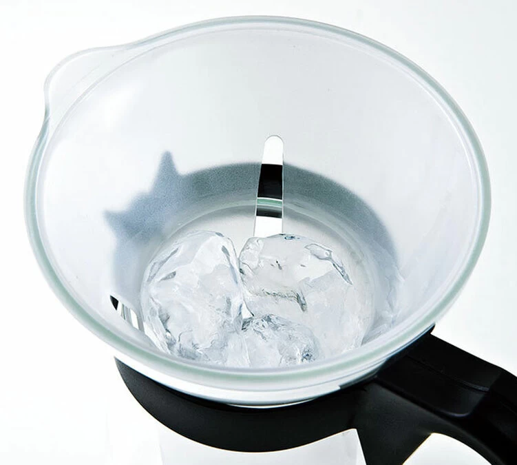 Quantité de glace conseillée par Hario : 120 g pour 2 tasses, 150 g pour 3 tasses, 200 g pour 4 tasses.