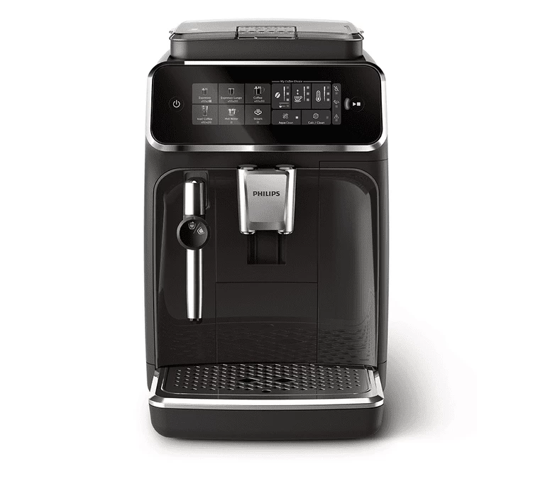 La machine à café à grains Philips EP3324/40 est une jolie cafetière de couleur noire et gris cachemire poli. Niveau taille, c’est une machine qui est compacte. Son réservoir à eau étant encastré sur le côté droit de la machine.