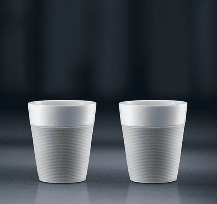 2 tasses en porcelaine avec bande silicone blanche Bistro