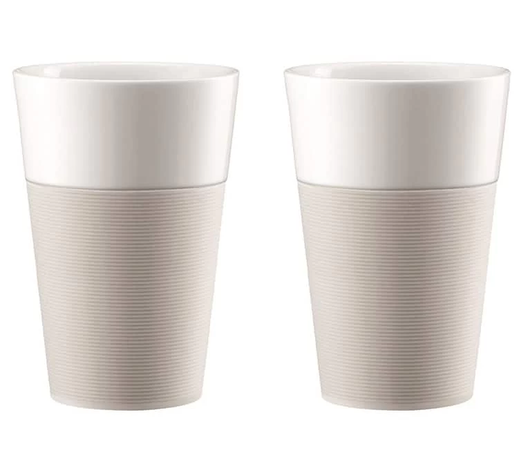 2 tasses Bistro en porcelaine avec bande silicone blanche 60cl – Bodum